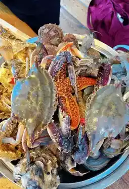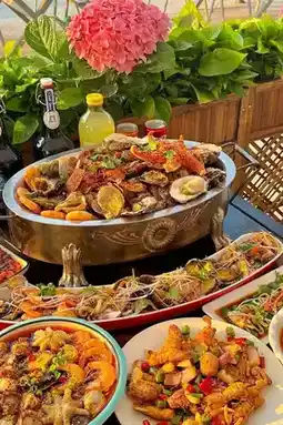 Oule Square's "Boat Boss" steamer releases heavenly vapors! Crab, shrimp, scallop mountain with ginger vinegar dip~