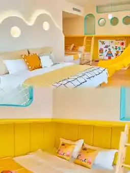 The slide leads straight to the night market, where you can enjoy all kinds of authentic delicious food just downstairs