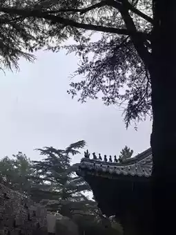 The park around Huancuilou boasts over 30 century-old trees that are especially stunning. The black pine needles glisten with rain, and the ancient locust tree crowns spread like ink clouds. Most special are the two Ming dynasty ginkgo trees in front of the tower. In golden autumn, their fallen yellow leaves create a magnificent scene known by Weihai locals as the "Golden Carpet." While strolling along the corridor bridge, wildflowers growing between the stone slabs sway in the rain, complementing the carved stone railings beautifully.