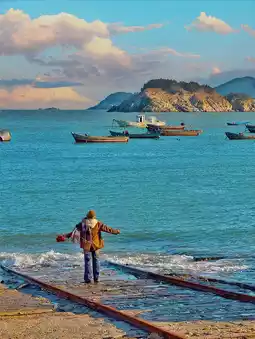 Who says rainy days aren’t good for travel? This coastal route in Weihai is breathtakingly beautiful! Especially Jianggujui in the mist and rain, where fishing boats at Heishuiyang Pier appear and disappear like a traditional ink painting🖌️
