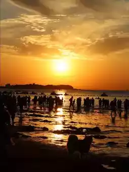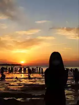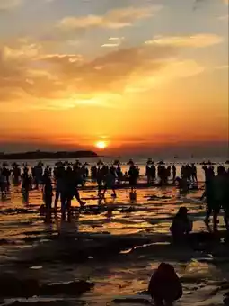 Check the sunset time on your phone and arrive at the beach early 🏝️ to witness a golden magical scene, a super healing orange sea, no filter needed! I always feel that the sea 🌊 and sunrise 🌅 sunset in different places are all unique, and watching them ten thousand times never gets boring. 🏜️