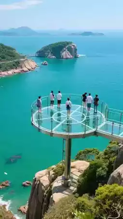 Maotoushan No. 5 Viewing Platform: a suspended glass platform offering a 360° unobstructed view of the green bay, a must for aerial shots!
