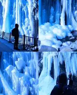 Scenic area - take the "sightseeing bus" or "walk for 15 minutes" to Shimenxia - check in the snowman doll - rose ice waterfall - Jinchan Lake (glass ice lake) - finally go to the ice and snow world