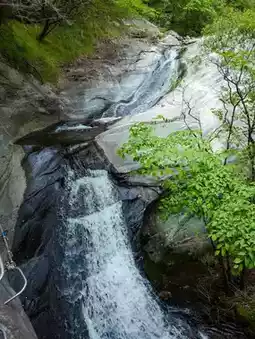 Creek valley hiking water + summit stroll + high-altitude glass canyon + mountain forest ancient temple