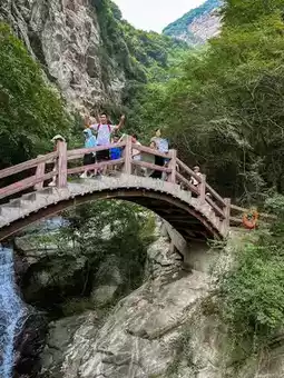 🔹Shimen Gorge Scenic Area (river path in the mountains): Take the scenic shuttle bus at the cable car entrance → Shimen Gorge → (shuttle bus one-way 💰10/person, round trip 💰15/person) → can also walk → Shimen Banshan Resort Hotel → Jiulong Waterfall → Jinchán Lake → Tianxian Waterfall → Tianya → Lover’s Valley → Shiban River