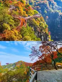 1⃣️ Qianlong Temple and Shimen Gorge route: Take the scenic shuttle bus ➟ Cableway service area cableway to Qianlong Temple ➟ Cableway return ➟ Shimen Gorge waterside area (visit Jiulong Pool and Jiulong Pass and other spots)