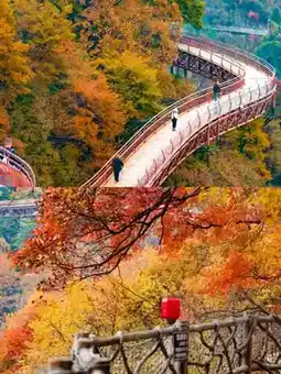 2⃣️ Classic route: Take the sightseeing bus from the ticket hall ➟ Cable car at the cableway service area to tour Qianlong Temple ➟ Glass plank road ➟ Take the sightseeing bus to Shimen Gorge