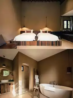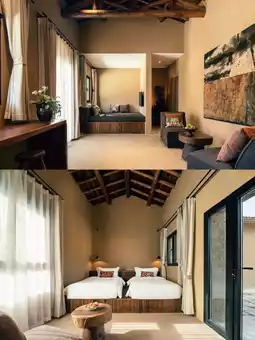 Fifteen guest rooms are nestled within four courtyards, situated on low rolling hills. Drawing inspiration from the surrounding landscape, the courtyards are named Shuiwowo (Water Nest), Caopopo (Grass Slope), Jiguan'guan (Chicken Crown), and Shanyawa (Mountain Hollow).