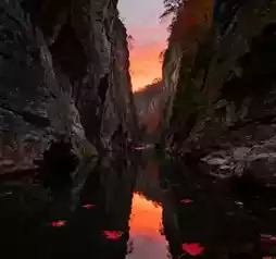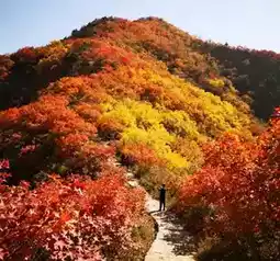 1. Shuanglong Gorge: Stroll along the plank road, with fiery red leaves on both sides and the gentle flow of the Weishui River, as if walking inside a painting.