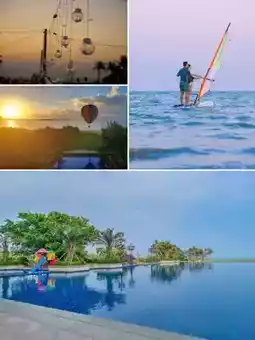The hotel's uniquely designed pool blends seamlessly with the surrounding tropical landscape, making it a perfect spot for photos. Whether it's the blue sky and white clouds during the day or the starry night sky, you can find the perfect angle to capture every beautiful moment of your trip.✨