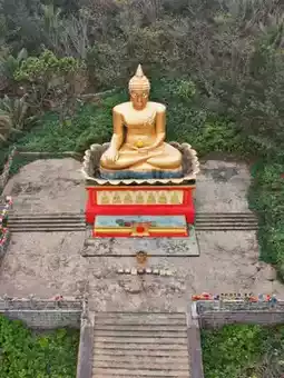 The Buddha statue is backed by green mountains and faces the sea. It bathes in the morning light and gazes at the setting sun every day. It has a solemn and quiet beauty that is quite shocking.