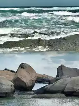 [3] The beach in front of the temple is very small, but the waves are very big. Standing on the reef, you will feel like "looking at the vast ocean from the east of Jieshi". You cannot go into the water.