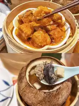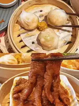 Signature Shrimp Dumpling: The dumpling skin is almost transparent, filled with 3–4 large shrimp. The plump shrimp are faintly visible. It's chewy and doesn't get old, no matter how many times you eat it!