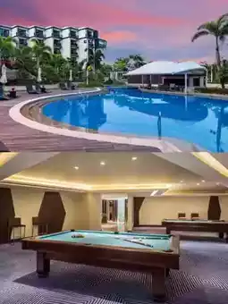 - Leisure and entertainment: There are 2 outdoor swimming pools, 1 indoor heated swimming pool, a 24-hour gym, a spa center, a family entertainment room, a children's playground, and an outdoor tennis court. You can also reach Qishui Bay Beach through the tropical gardens.