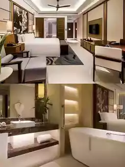 - Rooms and suites: There are 435 rooms, including deluxe rooms, sea view suites and villas, with room sizes starting from 50 square meters. Most rooms have direct access to stunning sea views, all with private balconies, and bathrooms with separate bathtubs and showers.