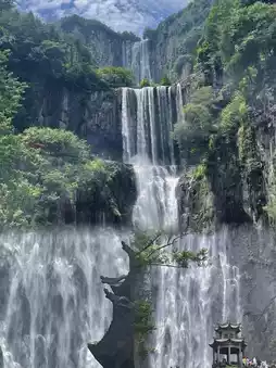 - Baizhang First Waterfall: This is the highlight! A waterfall with a drop of 207 meters, truly "like a silver river falling from the sky." Standing below the waterfall, the roaring sound is deafening, and the splashing water cools you down on a hot summer day🧊 Perfect for photos, especially at the viewing pavilion—every shot looks like a masterpiece📷 Just remember to bring a raincoat, or you’ll get soaked like a drowned rat.