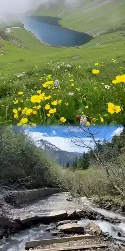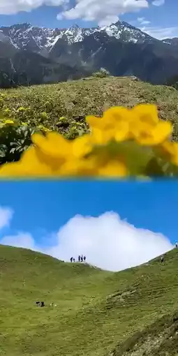 Here you'll find crystal-clear Dragon Pool, spectacular flower fields, vast alpine meadows, and leisurely grazing cattle and sheep scattered throughout the landscape. Wild flowers 🌸 carpet the ground and lush green grass covers the hills. While strolling along the boardwalk, you can even enjoy the fun of foraging for wild vegetables - deer ear chives, wild onions and other delicious treats await your discovery~