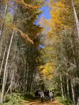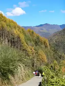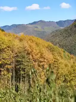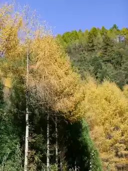 - Symphony of golden pines and colorful forests: Golden pine needles cover the ground, creating a stunning contrast with the vibrant broadleaf forests on the surrounding mountains, offering extremely rich color layers.