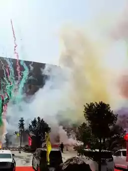 The hotel is decorated with lanterns and colorful flags, filled with a festive atmosphere. Entering from the hotel gatehouse, there is a festive scene along the way. Welcome light pole flags for the trial operation celebration are hung on both sides of the road, and festive balloons are flying in the sky. Walking to the main entrance of the hotel lobby, the scene has been arranged into a magnificent and enthusiastic viewing area and stage, and the welcome area is filled with congratulatory flower baskets from guests from all directions. The hotel lobby is crowded with people, the welcome reception offers a wide variety of colorful foods, and bands and flash mobs take turns performing wonderfully 🤹♂️🤹♂️🤹♂️