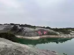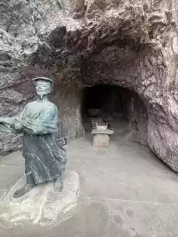 Today I will talk about the Fangshan Scenic Area. 40 yuan/person, free for Taizhou locals. The Fangshan Scenic Area is a volcanic relic and the largest Mesozoic rhyolite volcanic platform in Asia. At the entrance of Fangshan Mountain, there is a cliff with two big characters "Zhenshan" engraved on it, so it is called Zhenshan Cliff. This is actually a sacred mountain with many temples inside, praying for peace and security.
