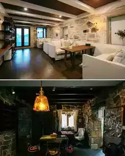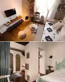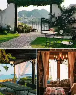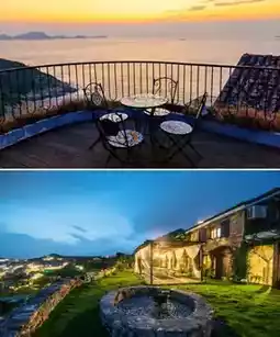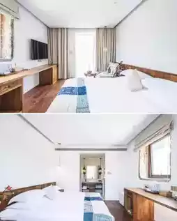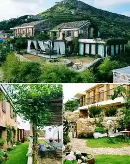 Transformed from traditional stone houses, the villa features ivy-covered walls and a front yard facing the sea. Its 800㎡ French-style lawn courtyard is perfect for picnics, sunbathing, and letting pets run free. The interior blends fishing village charm with French vintage aesthetics—stone walls, dark wood floors, and fabric furniture create a unique texture. The high-ceilinged lobby, antique furniture display area, bar, and reading nook make the common spaces feel like a seaside art museum.