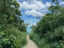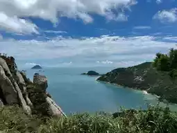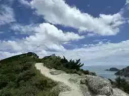 The trailhead starts at Xiaojiaochen Village. Follow the village road past the toll booth to find the entrance. The first kilometer is paved asphalt (very flat but already scorching by 9am). The mountain path consists mainly of gravel and dirt - avoid water shoes as pebbles easily get inside. Consider packing sandals if visiting the beach. Due to extreme heat, we only did the short loop, prioritizing safety over completing the full trail (though we missed some views).