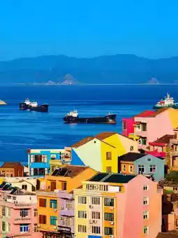 When it comes to colorful coastal villages in Zhejiang, Xiaoruocun in Shitang Town, Wenling City, Taizhou is definitely a must-visit. Known as the "Oriental Cinque Terre" and the "Macaron Rainbow Village," its colorful houses are built along the mountainside—blue is clear and transparent, yellow is bright, and pink is gentle. When sunlight shines on the walls, even the shadows carry a sweet, healing vibe. The vividness and layers you see with the naked eye are far more moving than what the camera can capture.