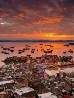 3️⃣Alternative to drones: Climb the "Viewing Hill" opposite Xiaoruocun (free entry, stone steps, about 10 minutes to the top). This is the best spot to overlook the whole village. In the early morning, you can capture the sea sunrise with Xiaoruocun as the foreground. Check the "Wenling Sunrise Schedule" in advance and arrive 20 minutes early to secure your spot.