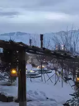 Xinjiang Hot Spring Hotel ceiling! The room has a private bath! Snow outside