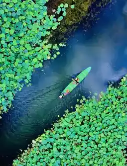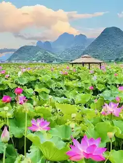 - 07:00 Climb Qinglong Mountain for morning mist panorama (free) → 09:00 Take willow leaf boat at Pucao Tang Pier for water fight (boat ticket 230 RMB includes bus, bring waterproof pouch) → 12:00 Eat lotus feast at Yi Xiang Shi Fu → 15:00 Visit Bailian Mountain Village lotus fields (denser flower sea than free area) → 18:30 Chase sunset at Leshui Cave (10 km by car).