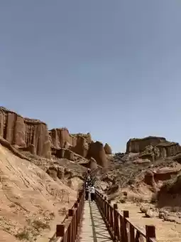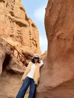 • Unique Yardang and Danxia Landforms: The canyon features mountains with various shapes, resembling natural sculptures such as "Golden Kiss," "A Thread of Sky," "Human-faced Sphinx," and "City of Ten Thousand Mountains."
