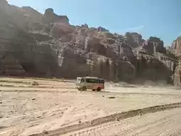 The shuttle bus sets off, kicking up clouds of yellow dust as it speeds toward the final stop. Outside the window, the breathtaking Danxia landforms unfold like a colossal oil painting, with vibrant layers of rock displaying a stunning palette. Shades of crimson, pale gray, and earthy yellow intertwine, exuding grandeur under the blazing sun. Across the vast Gobi desert, tenacious shrubs and isolated boulders occasionally dot the landscape, accentuating its desolate and majestic beauty. Riding all the way to the endpoint feels like embarking on an expedition across time, immersed in a world of mesmerizing colors.