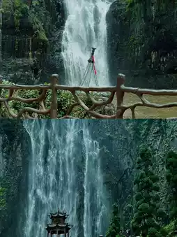 Enter from the north gate, and you can choose to walk 20 minutes down the mountain or take the elevator directly to the first waterfall for CNY 20. After admiring the spectacular first waterfall, take the mountain road to the second waterfall, and remember to wear a raincoat when passing through the Water Curtain Cave. Then take photos at the second waterfall viewing platform, and then go to the third waterfall, where you can take a panoramic photo of Baizhangji Waterfall. After arriving at the south gate, take the shuttle bus for CNY 10 to return to the north gate.