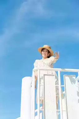 • Shooting angle: Stand on the breakwater, with the sea as the background, and the person looking sideways into the distance; use the blue and white arched balcony, and shoot from a low angle to highlight the architecture and sea view.