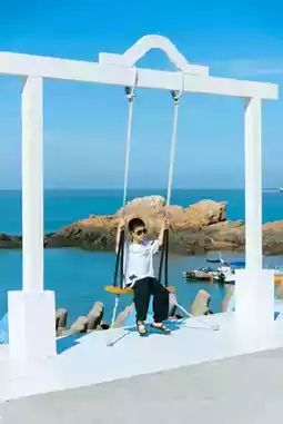 It is located on Zhongyu Island, on the right side between Shajiao Village and Huagang Fishing Village, Huagang Bridge, Yuangjue Street, and has not only natural beauty such as blue sky, sea, and islands, but also a nearly 1,000-meter-long breakwater. The blue and white arched balcony, pure white tables and chairs, and English signposts make for a great atmosphere. Whether it's a photo with friends, a couple's photo, a family photo, or a personal portrait, it's perfect.