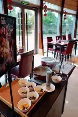 The buffet dinner and breakfast both featured local Wenzhou dishes: glutinous rice, meat swallow, lard cake, knock wonton, Yongjia wheat cake, pig offal noodles, and more. The flavors were authentic, so there was no need to go out and squeeze into small restaurants with the kids. You can enjoy all these dishes in one place. The restaurant also has a food cart that makes fresh dishes on demand.