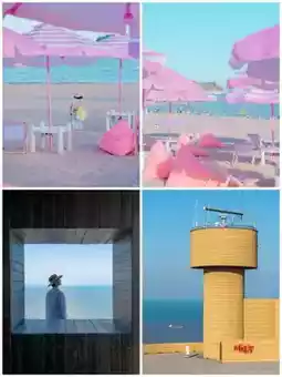 Secure a spot at the starting point of the 168 Golden Coastline, MOJ Coffee’s floor-to-ceiling window frames the East China Sea sunrise. Wearing a Klein blue sweatshirt on the cliff lawn, shoot continuously at 5:45 when golden light pierces the horizon, the photos come with a "Your Name" filter effect.