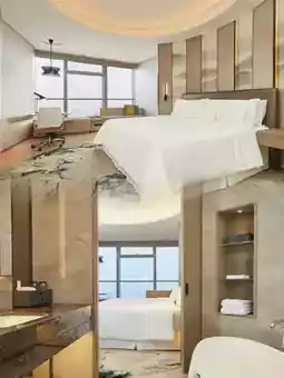 The lobby is spacious and bright, with a modern and artistic design. The rooms are fully equipped, featuring soft and cozy bedding, and floor-to-ceiling windows that offer stunning city views. The overall cleanliness is impeccable, with attention to detail that ensures a relaxing stay.