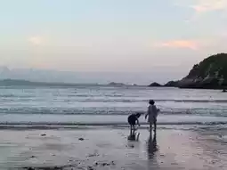 ✔️Jiucaiao Beach: Evening clam digging at low tide, with a popular swing on the grass by the beach