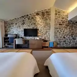 The hotel's quiet location, far from the city center, allowed me to fully relax without any distractions. The sea was a dazzling blue, and the beach scenery was breathtakingly beautiful. Above all, the hotel facilities exceeded my expectations. The view of the wind turbines and the blue sky from my room was a picturesque scene.