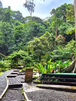 Kipungit Waterfall is located close to Poring Hot Springs, so it is easily accessible. There is a short walking trail of about 400 meters from the hot spring entrance to the waterfall, and this path is not just a simple route, but a precious experience in itself. As I walked along the path created in the forest, the tall trees blocked the sky, and the sunlight pouring through the leaves created a sparkling path. The sounds of birds, insects, and branches rustling while walking along this path felt like quiet music from nature.