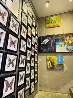 I wasn’t planning to buy anything — until I saw these handmade crochet animals with the cutest faces ever! The upstairs section of The Art Attics is filled with Sabah-made items like these, along with framed art, postcards, and pottery.