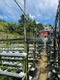 Heading toward Kota Kinabalu? Make a quick stop at Mesilau Highland Strawberry Farm. It’s small but full of character—with colorful buildings, vintage benches, and cute strawberry-themed decor.