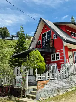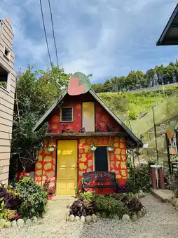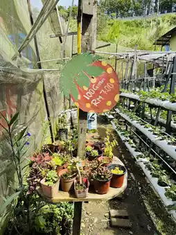 There’s something nostalgic about this place—from the painted strawberry signs to the garden swing and old-style red building. Plus, the cool breeze and quiet surroundings make it a perfect place to stretch your legs, especially after a long mountain drive.