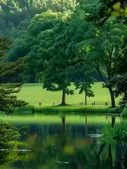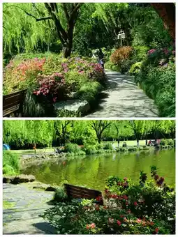 🌿 Benches by the pond, enjoy the greenery and spring sunshine