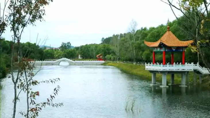 Gorgeous scenery: lakes, islands, bridges, pagodas.