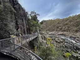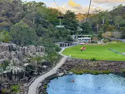 Located right in the city, no admission fee required, and there's a parking lot at the entrance. It's a great spot for a family outing, with a recommended visit duration of about 2-3 hours. The chairlift requires a ticket, but it's worth the ride—very relaxing. Near the station, you'll find peacocks and kangaroos that are not afraid of people, making it easy to take photos. Within the park, you can follow the trails to the gorge and suspension bridge area. In autumn, the park is adorned with red and yellow maple leaves, perfect for capturing beautiful photos.
