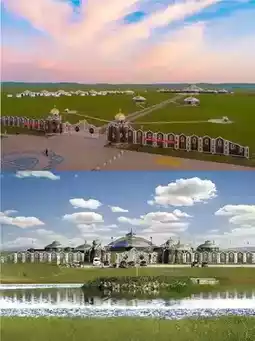 Located in the heart of the Xiwuzhumuqin Grassland, about 15 kilometers south of Provincial Road 204 in Xiwuzhumuqin Banner, this scenic area boasts outstanding grassland views and vibrant ethnic culture. The site was built as the Khan City where Genghis Khan held grand ceremonies, featuring over 200 Mongolian yurts and luxurious golden-topped tents. Visitors can stay in yurts, taste authentic Mongolian cuisine, watch song and dance performances at the bonfire square, enjoy wrestling and horse racing on the grassland, and experience horseback riding and off-road vehicles.