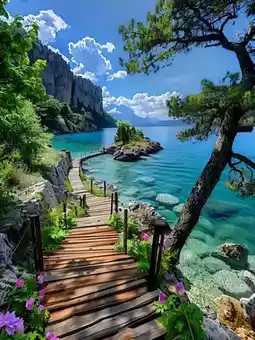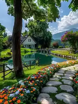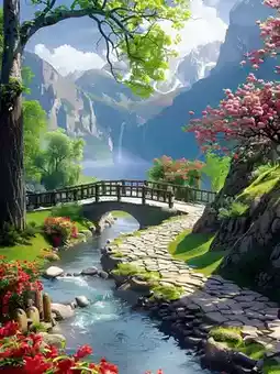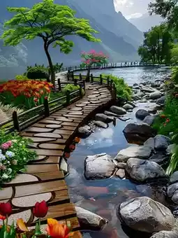 Walk through the primeval forest and encounter the first glimpse of the stream! The water is crystal clear, and the sunlight refracts a jade color