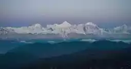 They are not isolated but a group of silent giants standing shoulder to shoulder, forming a continuous barrier. The snow on the peaks glistens coldly under the sunlight, like scattered diamonds cast by God, while the clouds and mist wrapped around the mid-mountain add a touch of ethereal mystique to this grandeur. The wind blows from deep within the glacier, carrying ancient chill; when it brushes your cheek, you can almost hear the faint cracking of the ice layers—traces of time etched on the snow mountains.